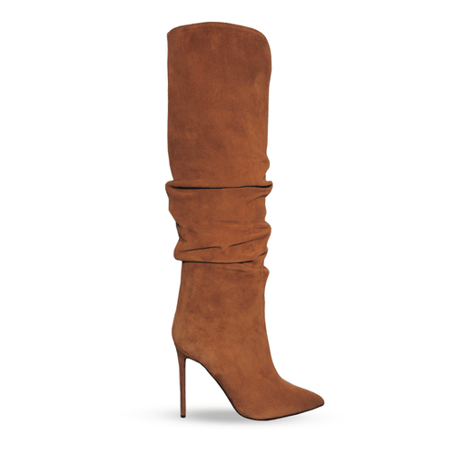 Kniehoher Stiefel aus Wildleder mit spitzer Zehenpartie und Stilettoabsatz von 100 mm oder 120 mm
