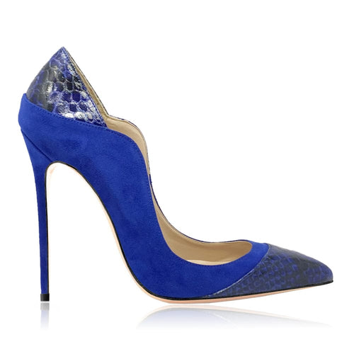 Dekolleté spitze Zehenpartie aus Wildleder mit Pythonkappe und Absatz 100 mm oder 120 mm Stilettoabsatz