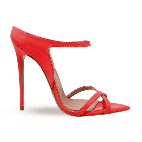 Spitze Sandale mit Vorderbändern und Knöchelriemchen. 100 mm oder 120 mm Pfennigabsatz