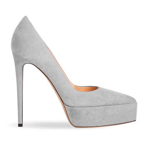 Pointed décolleté with suede upper, 3.5cm platform and 13cm heel