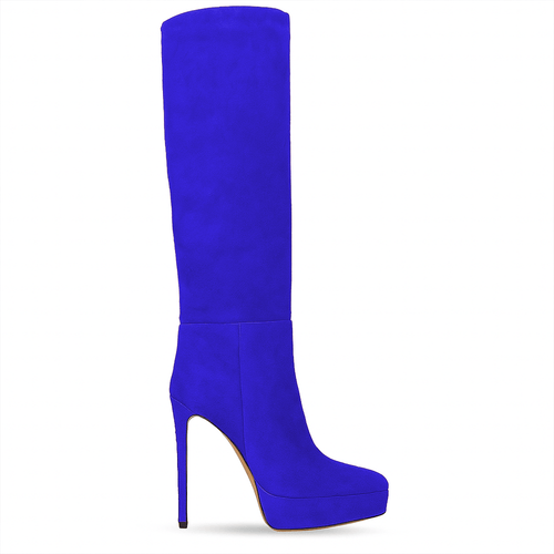 Tubular knee-high boot in genuine suede with stiletto heel and 2.5cm platform