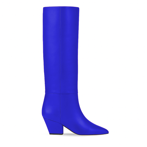 Tubular boot below the knee in genuine leather with a 60mm wide heel