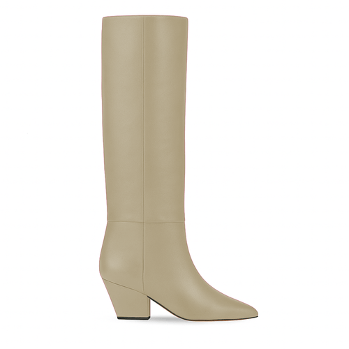 Tubular boot below the knee in genuine leather with a 60mm wide heel