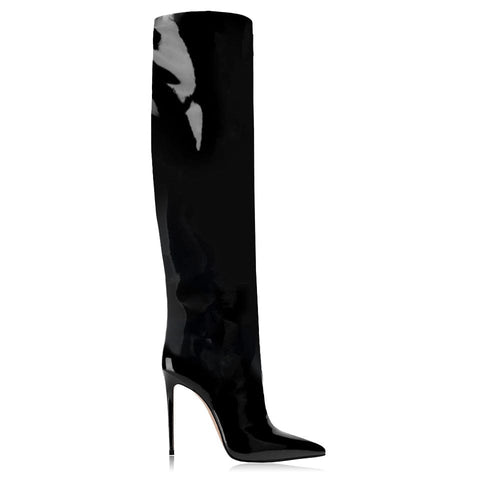 Botte tubulaire vernie à bout pointu avec talon aiguille de 100 mm ou 120 mm