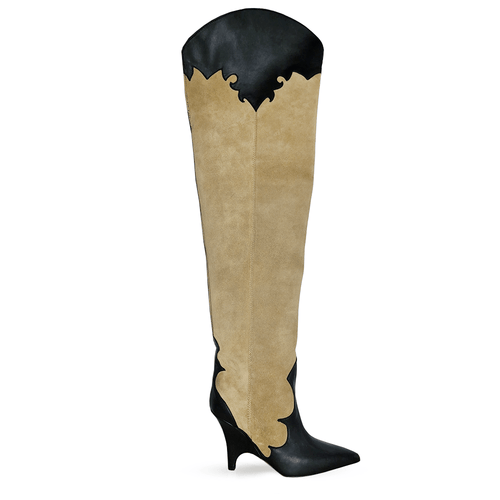 Cuissard haut jusqu'à la cuisse, bout pointu en daim avec semelle compensée de 100mm