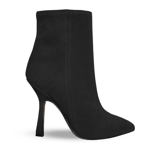 Bottine pointue en suède véritable avec fermeture éclair interne et talon de 100mm.