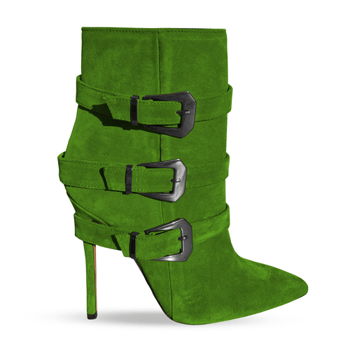 Bottine en daim à bout pointu avec 3 boucles latérales et talon aiguille de 100 mm ou 120 mm