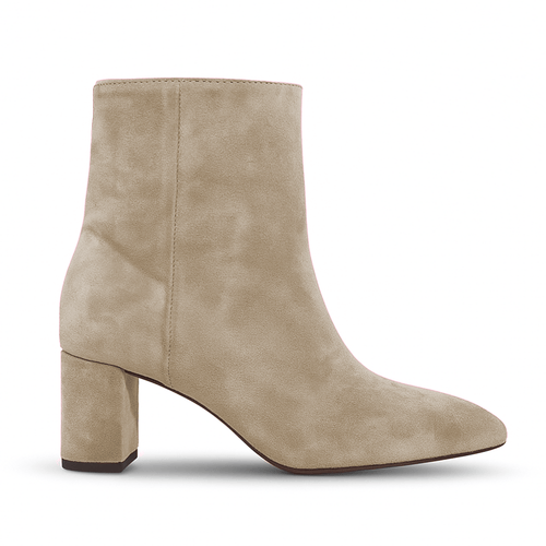 Stivaletto a punta sfilata in vero camoscio con zip interna e tacco da 70mm