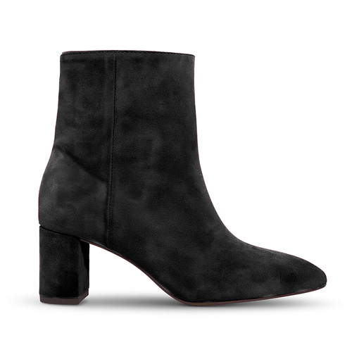 Stivaletto a punta sfilata in vero camoscio con zip interna e tacco da 70mm