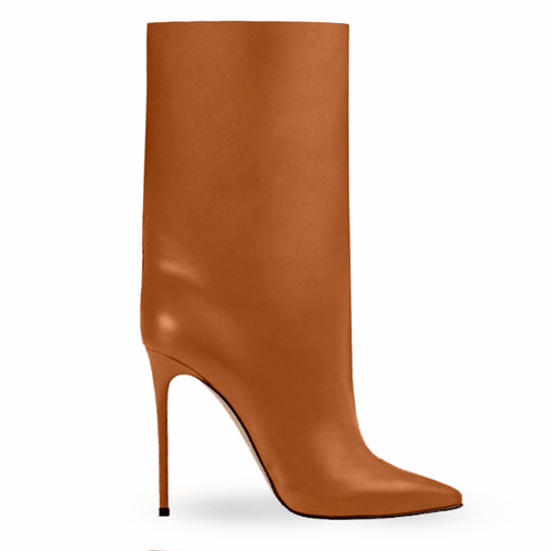 Botín tubular bajo la pantorrilla en piel genuina con tacón stiletto de 100mm y 120mm